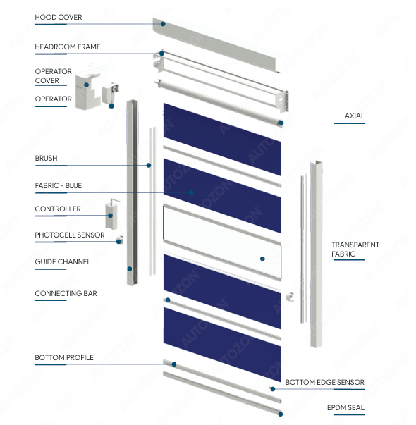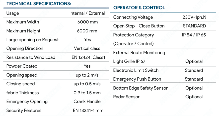 • These high-speed doors are ideal for use in sheltered indoor areas with low wind loads and moderate temperatures.