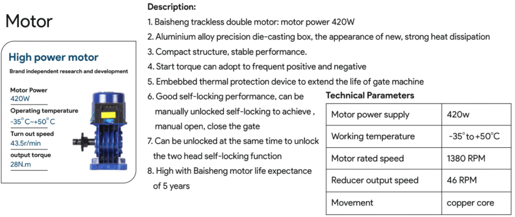 1. Baisheng trackless double motor: motor power 420W